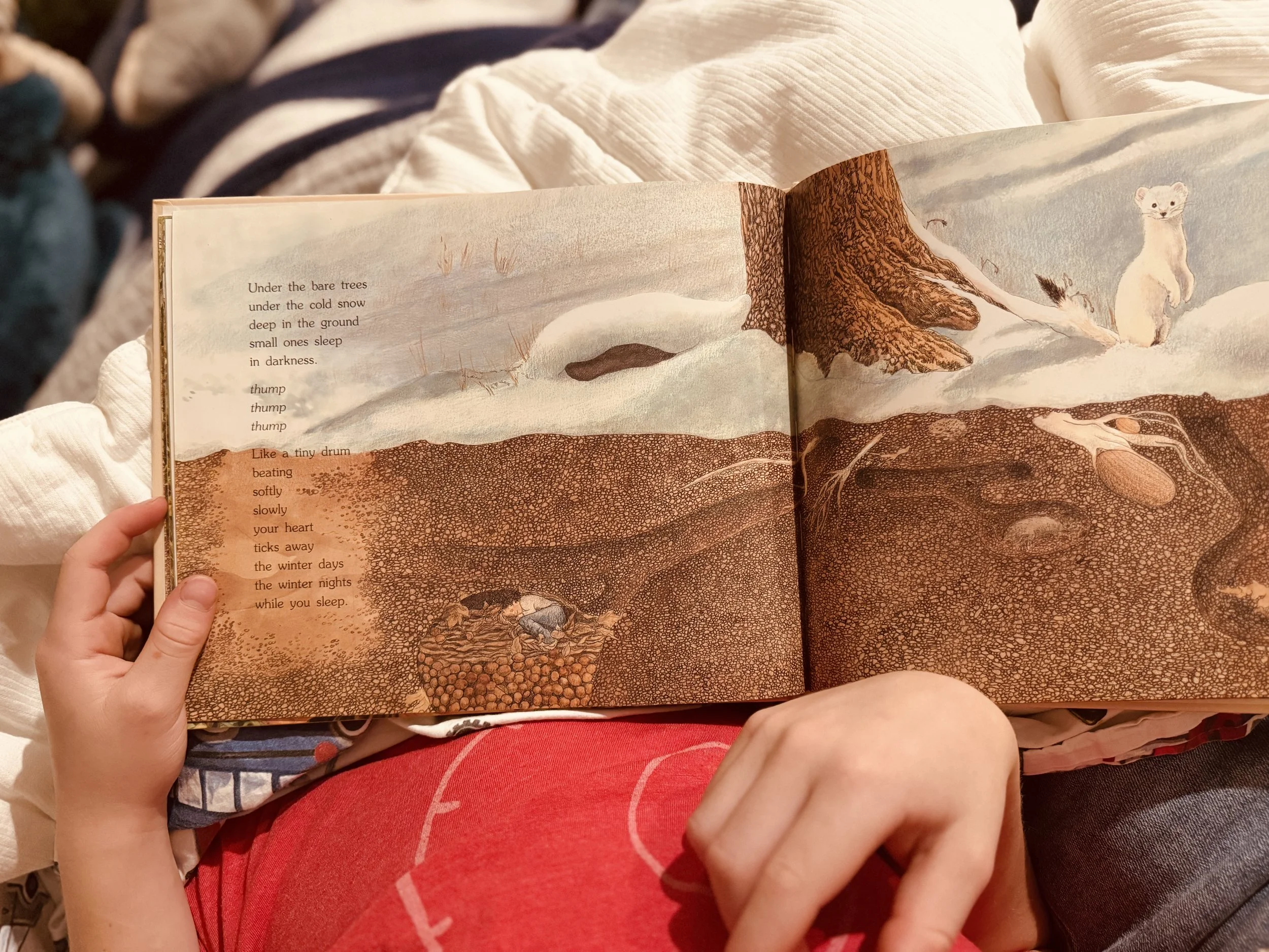 An image in my mind that God keeps pointing me back to lately is the image of a little girl lying down, curled up and just enjoying being loved. My youngest son has been asking me to read him old children’s books before bed that quite noticeably had the same theme night after night. Dead trees, winter, and creatures finding safety in their cute little burrows below the layers of dirt and snow. There was one in particular about a girl imagining herself as a chipmunk and there was the exact image I had been given for days… she was curled up, safe and warm in her burrow, in the dead of winter while storms howled above her. No striving, no worrying, no fixing oneself. Winter is the time for lying down and having a good rest. I think this is what alignment can look like… like lying down.